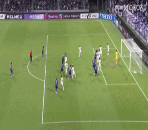 廣島三箭隊利用定位球率先破門。