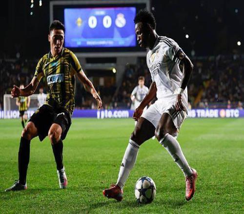 開場(chǎng)后皇馬毫無(wú)身價(jià)碾壓對(duì)面百倍的觀感,甚至在開場(chǎng)前15分鐘內(nèi),除了維尼修斯錯(cuò)失的一次單刀射門幾乎毫無(wú)機(jī)會(huì),反而是凱拉特借主場(chǎng)之勢(shì)打出了幾次射門。凱拉特能在歐冠資格賽附加賽兩回合零封凱爾特人,證明該隊(duì)的防守有一定水準(zhǔn)。整個(gè)上半場(chǎng),進(jìn)攻線主力盡出的皇馬基本沒(méi)制造出太多破門機(jī)會(huì),如果不是凱拉特門將撲倒馬斯坦托諾送點(diǎn),皇馬怕是很難在中場(chǎng)休息前打開僵局。