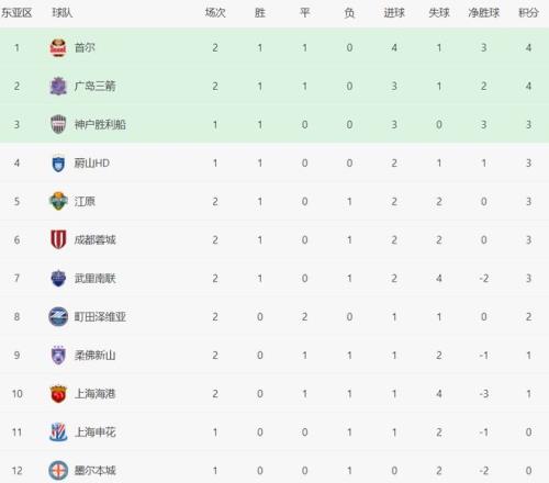 在積分榜上,首爾4分排名第1。廣島三箭也是4分。有5支球隊(duì)都是3個(gè)積分,包括成都蓉城。成都蓉城排名第6。而上海海港2輪只拿到1分,排名倒數(shù)第3名。上海申花只踢了1輪,0個(gè)積分,排名倒數(shù)第2。而墨爾本城也是0分,排名倒數(shù)第1。