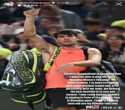再來,我們將視線轉(zhuǎn)到上海大師賽,就在今天,上海大師賽迎來一個(gè)讓人遺憾的消息:阿爾卡拉斯宣布退出上海大師賽。