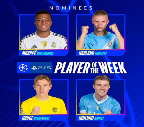 歐冠聯(lián)賽階段第二輪所有比賽戰(zhàn)罷,歐冠官方公布了本周最佳球員候選,分別是姆巴佩、哈蘭德、海于格、霍伊倫。