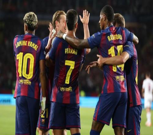 巴薩首發(fā):25-什琴斯尼、5-庫巴西、18-赫拉德·馬丁、23-孔德、24-埃里克·加西亞、8-佩德里、20-奧爾莫、21-德容、14-拉什福德、10-亞馬爾、7-費