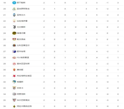 第二輪全部結(jié)束之后,最新積分榜排名: