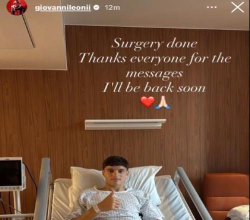 在完成手術后,萊昂尼通過個人社交媒體賬號向外界報喜:“手術完成。謝謝大家的支持和留言。我會很快回來的。”