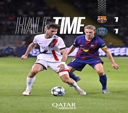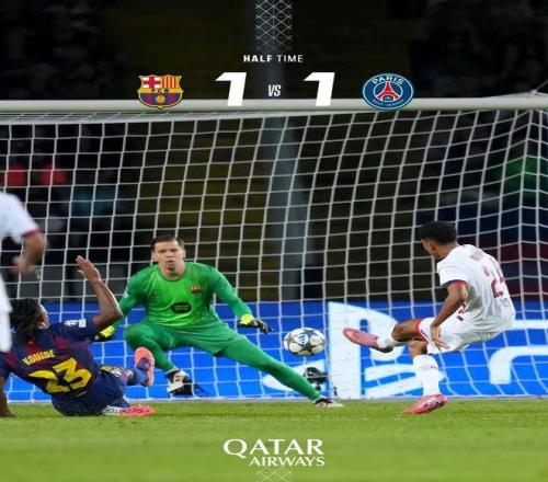 半場(chǎng)結(jié)束,球隊(duì)暫時(shí)1:1巴塞羅那。