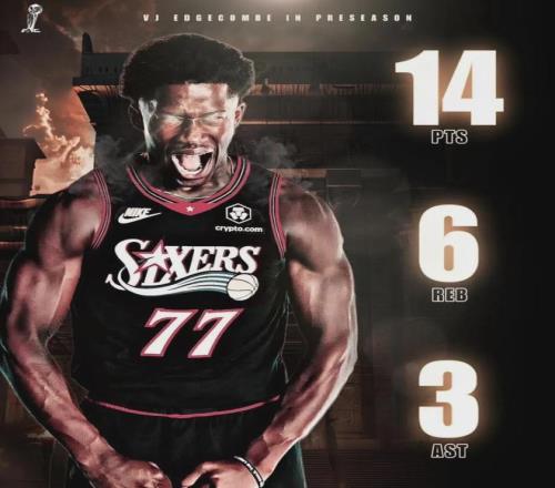 25屆探花秀VJ-埃奇庫(kù)姆(費(fèi)城)在此役,迎來(lái)了自己NBA季前賽首秀,以首發(fā)分衛(wèi)身份出戰(zhàn),亮相時(shí)間為全場(chǎng)最高的約31分鐘,投籃13中4,其中6中1,罰球5中5貢獻(xiàn)14分6板3助,正負(fù)值+1,身體天賦的確瘋狂,可投籃還是有很大的提升空間。