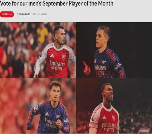 官方:馬丁內(nèi)利、特羅薩德、祖比門迪和加布里埃爾被提名為了阿森納9月份隊內(nèi)最佳球員候選。