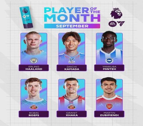 祖比門迪被提名為了英超9月份最佳球員候選。
