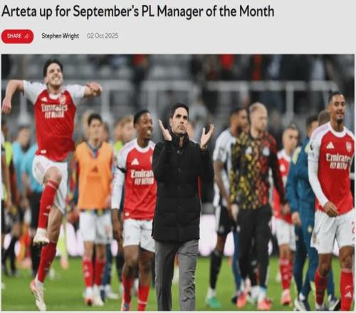 官方:阿爾特塔被提名為了英超9月份最佳主帥候選。