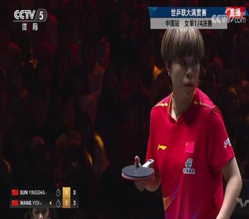 10月3日,WTT中國大滿貫女單1/4決賽,孫穎莎4-3(14-12、4-11、11-6、7-11、12-14、11-3、11-8)戰(zhàn)勝隊友王藝迪,晉級四強。孫穎莎半決賽的對手是陳幸同和朱雨玲之間的勝者。