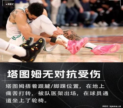 上賽季東部半決賽,在凱爾特人對(duì)陣尼克斯的系列賽G4比賽中,杰森塔圖姆在無(wú)對(duì)抗情況下捂著跟腱/腳踝位置痛苦倒地!隨后,塔圖姆被隊(duì)醫(yī)架出場(chǎng)并坐上輪椅返回更衣室。最終,杰森塔圖姆被確診為右腳跟腱斷裂!次日即5月14日,凱爾特人官方宣布,塔圖姆成功接受了右腳跟腱斷裂修復(fù)手術(shù)。至此,塔圖姆2024-25賽季季后賽徹底報(bào)銷(xiāo)!