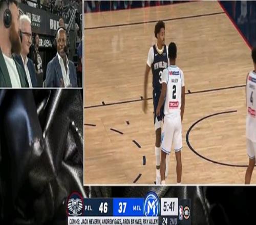 凱爾特人名宿加內(nèi)特到場觀戰(zhàn),雷-阿倫現(xiàn)場解說。