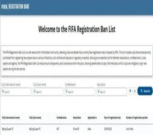 FIFA官方注冊(cè)禁令披露系統(tǒng)近日公布新增北京國(guó)安一條禁令,禁令為無(wú)限期直至案件解決。在解決前北京國(guó)安將不能操作國(guó)際國(guó)內(nèi)轉(zhuǎn)會(huì),以及注冊(cè)新球員。