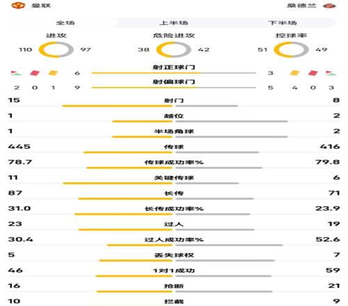 曼聯(lián)vs桑德蘭全場(chǎng)數(shù)據(jù):射門158,控球率51%49%