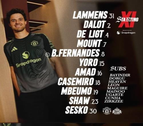 本周六英超第7輪,曼聯(lián)主場(chǎng)迎戰(zhàn)升班馬桑德蘭。賽前紅魔公布首發(fā)陣容,夏窗新引進(jìn)的比利時(shí)門將拉芒獲得首秀機(jī)會(huì)。具體首發(fā)如下:拉芒/約羅、德利赫特、盧克·肖/阿馬德·迪亞洛、卡塞米羅、布魯諾·費(fèi)爾南德斯、達(dá)洛特/姆伯莫、芒特/舍什科