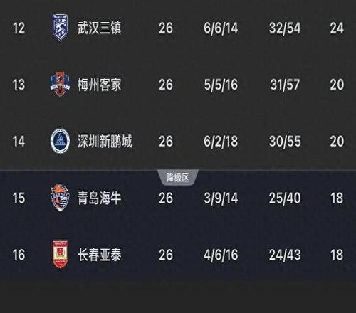 中超降級隊伍預(yù)測!青島海?;窘导?,長春亞泰有望突圍!