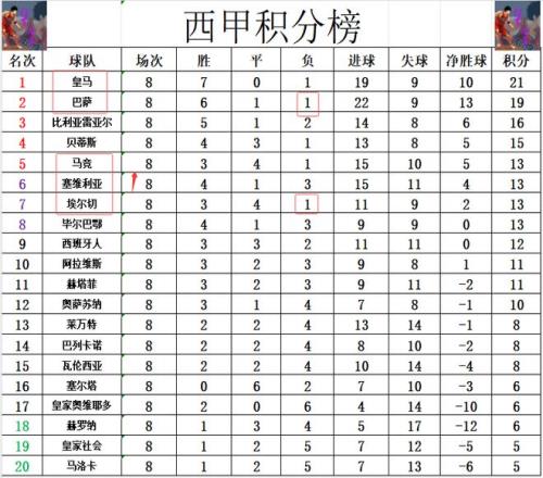 西甲最新積分戰(zhàn)報巴薩慘敗無力超皇馬奪回榜首馬競7輪不敗排第5