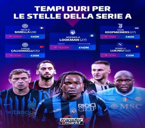 而在身價(jià)下跌方面,今夏鬧轉(zhuǎn)會(huì)失敗的亞特蘭大前鋒盧克曼下跌至4000萬歐,跌幅為2000萬歐,成為跌幅最大的意甲球員。