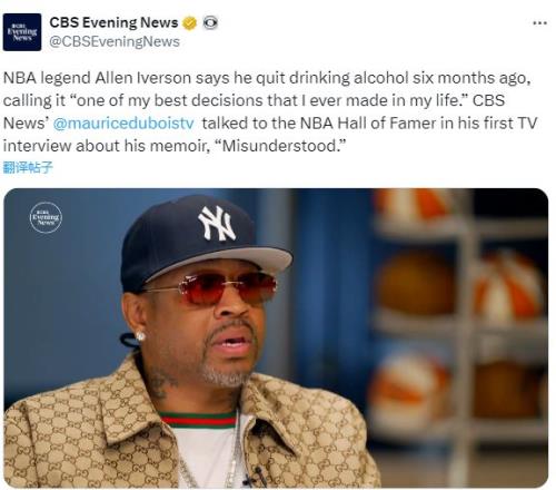 艾弗森戴著墨鏡和棒球帽,胡子早已花白,他表示:我一生中做過的最正確的決定之一,就是不再喝酒。當你喝醉時,你不會是平時的自己。而當我在別人身上越來越多地看到這一點時,我就越發(fā)慶幸自己做出了這個決定?!?/p>