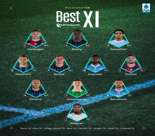 奧爾索利尼(博洛尼亞)7.0分、安古伊薩(那不勒斯)7.5分、巴雷拉(國際米蘭)7.5分、拉扎爾-薩馬爾季奇(亞特蘭大)7.0分