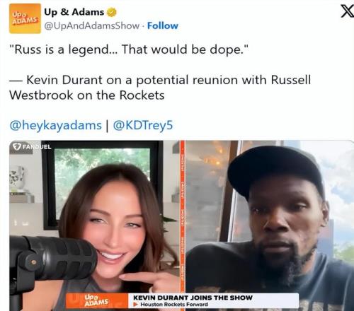 在凱-亞當斯的播客節(jié)目中,杜蘭特稱威斯布魯克能否加盟火箭與自己“無關”?!拔彝耆磺宄矝]向任何人打聽過(重聚的事)。這件事根本沒被提上議程,而且通常這類事要是有眉目,動靜都會很大,”杜蘭特說,“但除了網上球迷的討論,我沒聽到任何相關消息?!?/p>