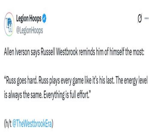 前NBA球星艾弗森在最近的一次節(jié)目上也談到威少,他認為威少是現(xiàn)役中最讓他想起自己的球員?!八蚯蚱磩攀悖繄霰荣惗枷褡詈笠粓鲆粯尤σ愿?。他的能量始終保持在同一水準,做任何事都付出全部努力?!?/p>
