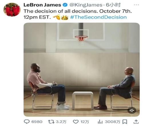 10月7日凌晨,湖人老大詹姆斯突然更新了推特動(dòng)態(tài),他寫道:“所有決定中的決定,10月7日,美東時(shí)間中午12點(diǎn)。#決定2”換算成北京時(shí)間即明天凌晨0點(diǎn)。