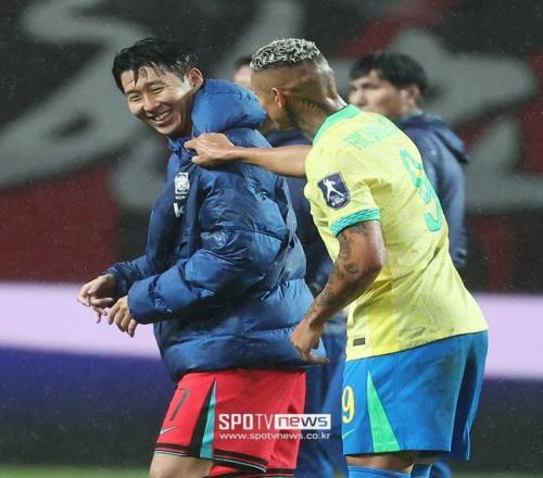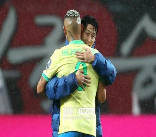 老友相見,巴西大勝韓國賽后,里沙利松與孫興慜交談并擁抱