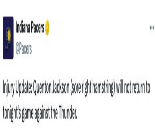 2人傷退!步行者官方宣布杰克遜&弗菲因傷提前退出比賽