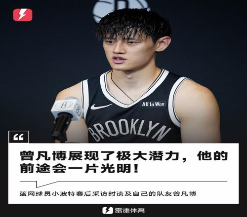 賽后籃網球員小波特接受了記者采訪,小波特表示曾凡博展現出了很大的潛力,他的未來會一片光明。