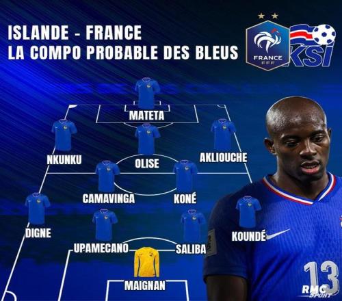 法國客戰(zhàn)冰島首發(fā)預測:馬特塔、恩昆庫、卡馬文加出戰(zhàn)