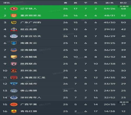 北京時間10月12日,昨天的中甲聯(lián)賽第26輪率先結(jié)束了4場對決,最新積分榜如下!