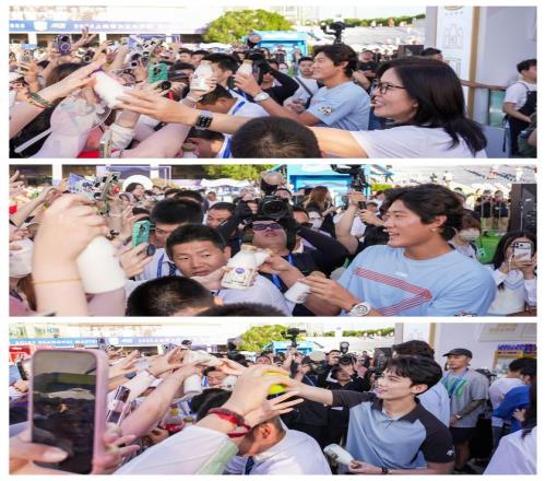 隨后,光明優(yōu)倍品牌代言人吳磊的空降,再次點燃全場?,F(xiàn)場,青春活力的吳磊與郎平、張之臻共同化身“光明鮮活店長”,親手為場外觀眾遞上大師杯限定特調(diào)飲品、光明致優(yōu)和光明優(yōu)倍鮮牛奶等飲品,讓每一位接過飲品的觀眾,都能直觀感受到“近距離接觸星光”的驚喜與“品嘗鮮活營養(yǎng)”的滿足。
