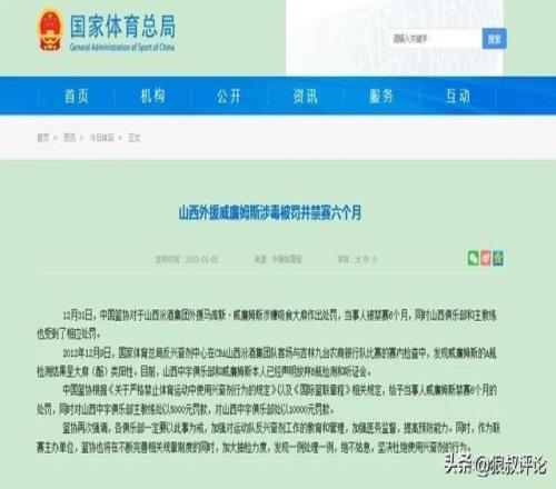 中國(guó)籃協(xié)根據(jù)《關(guān)于嚴(yán)格禁止體育運(yùn)動(dòng)中使用興奮劑行為的規(guī)定》以及《國(guó)際籃聯(lián)章程》相關(guān)規(guī)定,給予當(dāng)事人威廉姆斯禁賽6個(gè)月的處罰,同時(shí)對(duì)山西中宇俱樂(lè)部主教練處以5000元罰款,對(duì)山西中宇俱樂(lè)部處以10000元罰款。