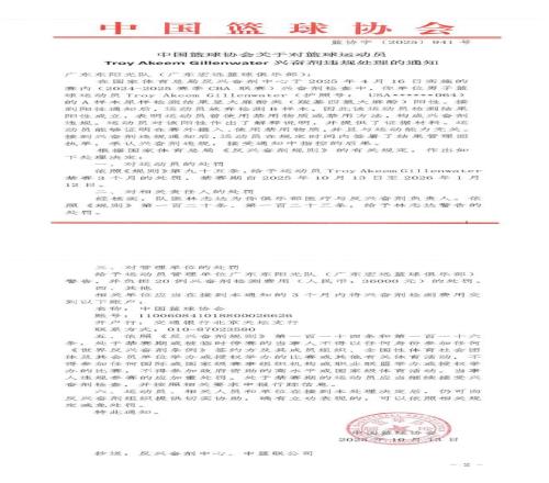北京時(shí)間10月13日晚8點(diǎn)45分,中國(guó)籃協(xié)正式官宣,公布了對(duì)興奮劑違規(guī)的廣東遠(yuǎn)隊(duì)前外援吉倫沃特的處罰結(jié)果。