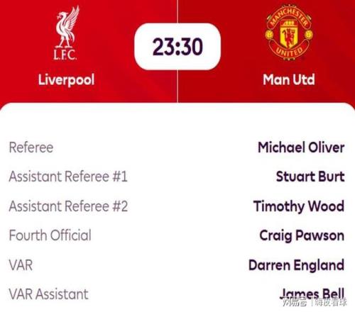 根據(jù)英超官網(wǎng)發(fā)布的信息,利物浦對(duì)陣曼聯(lián)的比賽,邁克爾·奧利弗將擔(dān)任主裁判,助理裁判是斯圖爾特·伯特和蒂姆·伍德,第四官員是克萊格·鮑森,VAR裁判是達(dá)倫·英格蘭,VAR助理是詹姆斯·貝爾。從名字來(lái)看,相信球迷都不會(huì)陌生,多人都有參與重大比賽的經(jīng)歷。