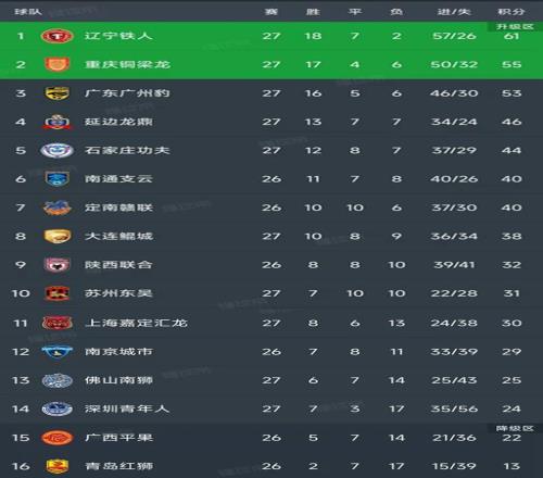 中甲第27輪結(jié)束了5場比賽,最新積分榜如下!