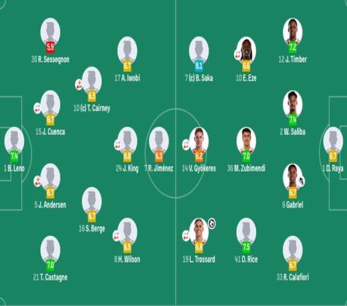 富勒姆首發(fā):1-萊諾、21-卡斯塔涅、5-安諾森(42'31-迪奧普)、15-昆卡(82'3-巴錫)、30-塞塞尼翁、16-博格、10-凱爾尼(63'22-凱文)、8-哈里-威爾遜(82'11-阿達(dá)瑪·特勞雷)、24-喬希-金(63'32-史密斯-羅)、17-伊沃比、7-勞爾·希門尼斯
