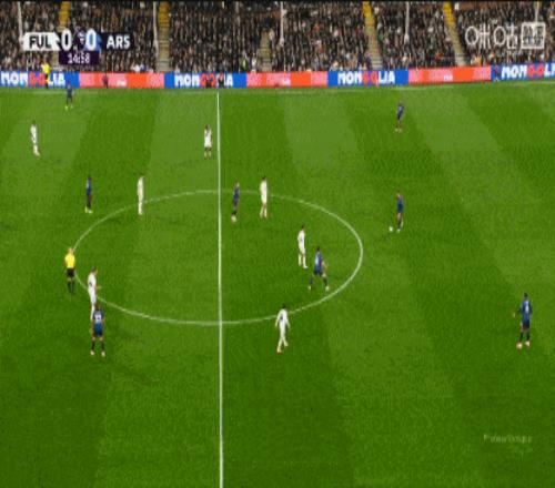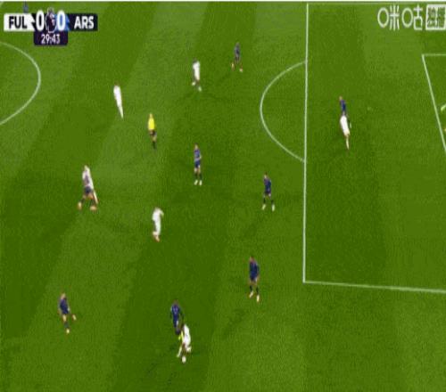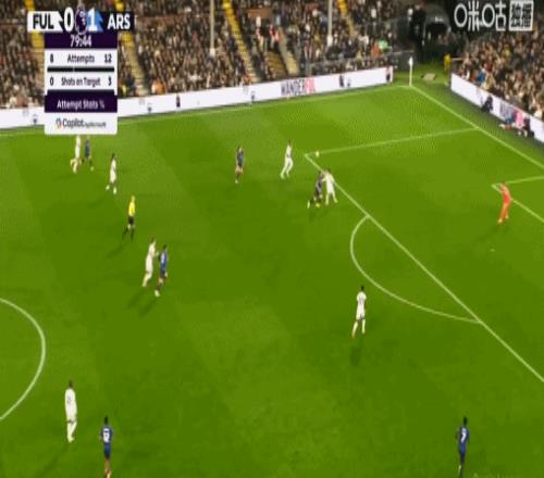 第58分鐘,阿森納角球機(jī)會,薩卡主罰,加布里埃爾頭球擺渡,特羅薩德?lián)岦c破門,阿森納1-0領(lǐng)先富勒姆。