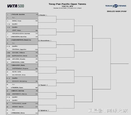 東京站:鮑里妮、萊巴金娜領(lǐng)銜,中國金花王欣瑜首輪對陣一位資格賽球員。