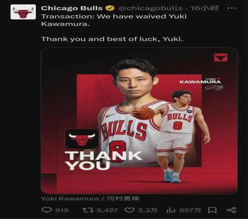 在NBA新賽季開始之前,芝加哥公牛隊(duì)裁掉了球隊(duì)的雙向球員河村勇輝。