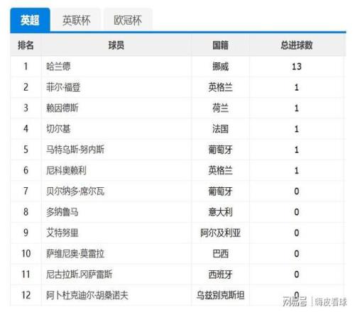哈蘭德有多么重要,問問曼城,問問挪威就知道了,超級(jí)中鋒的存在,真的可以確保一支球隊(duì)的下限。盡管曼城的中場(chǎng),因?yàn)楦鞣N原因,還在不斷調(diào)整當(dāng)中,唯一不變的前面那個(gè)人,只要那個(gè)男人保持健康,保持狀態(tài),進(jìn)球往往就等于勝利??纯绰堑挠⒊?duì)內(nèi)射手榜,應(yīng)該用怎樣的詞語來形容才好呢,一枝獨(dú)秀,還是在座的各位都是什么來的?