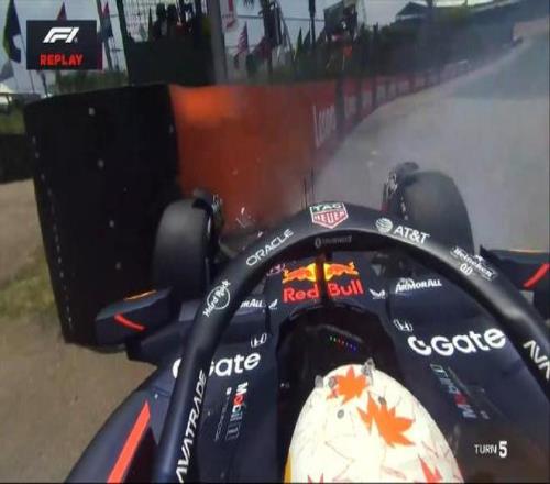 角田失控碰到5號彎護(hù)墻,前翼受損,他駕駛賽車返回維修區(qū)