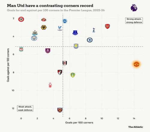 然而,他們的進攻角球得分率(每100次角球攻入14.3球)在2025-26賽季的英格蘭頂級聯(lián)賽中高居榜首。