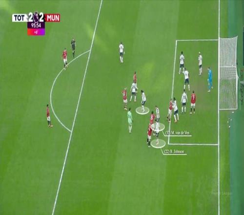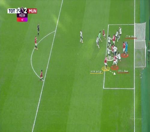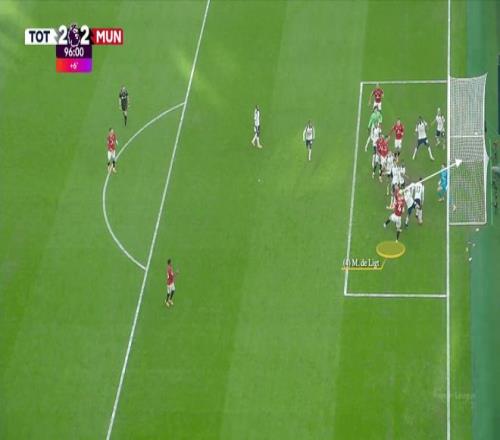 在這個例子中,來自周六2-2戰(zhàn)平托特納姆熱刺的比賽,在馬奎爾被換下以及熱刺打入兩球后,德利赫特的角色從阻擋者變成了攻擊目標之一。
