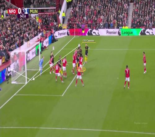 曼聯(lián)為卡塞米羅創(chuàng)造的自由度和空間,使他能夠接到布魯諾-費爾南德斯開出的內旋傳中,將比分改寫為1-0。