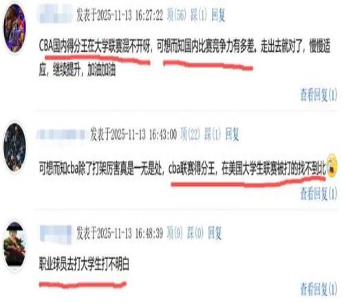 對(duì)于林葳而言,他似乎已經(jīng)在教練組眼里出現(xiàn)了信任危機(jī)。NCAA生涯前三戰(zhàn),他合計(jì)17中1,三分球10中0,僅得到7分。作為CBA聯(lián)賽的本土得分王,林葳在NCAA卻遭遇拿到兩位數(shù)得分都很困難的窘境,這從另一個(gè)角度也凸顯了國(guó)內(nèi)聯(lián)賽的競(jìng)爭(zhēng)力有多差。不少球迷也直言:職業(yè)球員去打大學(xué)生都打不明白。