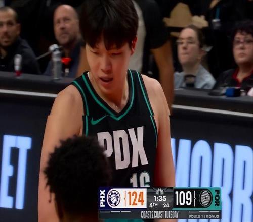 第四節(jié)僅僅5分鐘,楊瀚森就貢獻(xiàn)了4分1籃板1助攻,表現(xiàn)非常搶眼,這可是正兒八經(jīng)打得太陽隊(duì)的主力,當(dāng)時(shí)可不是無懸念時(shí)間。后來,開拓者比分逐漸被拉開,比賽懸念失去之后,練兵時(shí)間,楊瀚森再次獲得上場(chǎng)機(jī)會(huì),一上來就有表現(xiàn),先是在籃下封蓋理查茲,然后再秀腳步,籃下一個(gè)轉(zhuǎn)身,直接上空籃命中,緊接著,他連續(xù)兩次助攻西索科吃餅,隨后在被封蓋后,反應(yīng)迅速,拿到皮球繼續(xù)打,完成2+1,罰球也進(jìn),太厲害了!