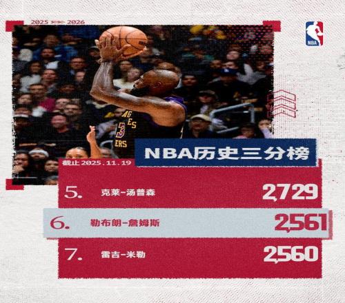 此役,詹姆斯全場(chǎng)總計(jì)僅出手7次,但外線手感頗佳,3次三分嘗試命中2球,輕松拿到11分,還順手完成了在歷史三分榜上對(duì)雷吉-米勒的超越。