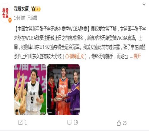 張子宇無緣新賽季W(wǎng)CBA:未能在截止日前注冊與山東女籃存分歧